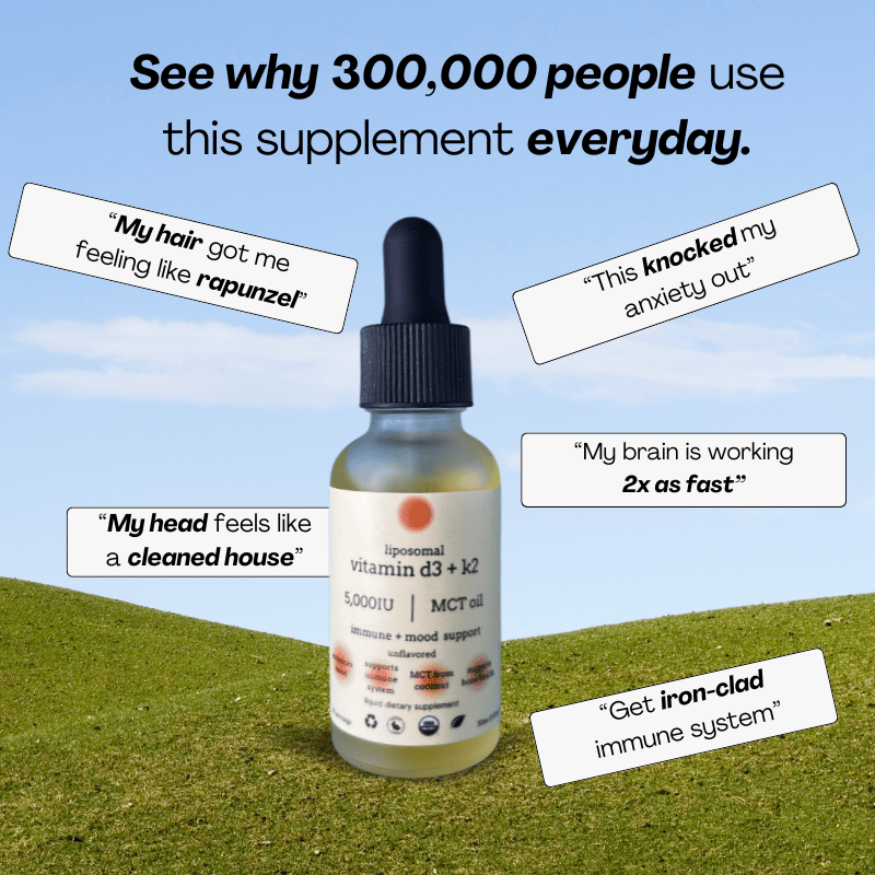 Our magical, potent, liposomal formula is packed with benefits in every drop. 9/10 people reported having less anxiety, and mood swings after taking our Vitamin D for 1 month. There is now 300,000+ people that take our Vitamin D every day!